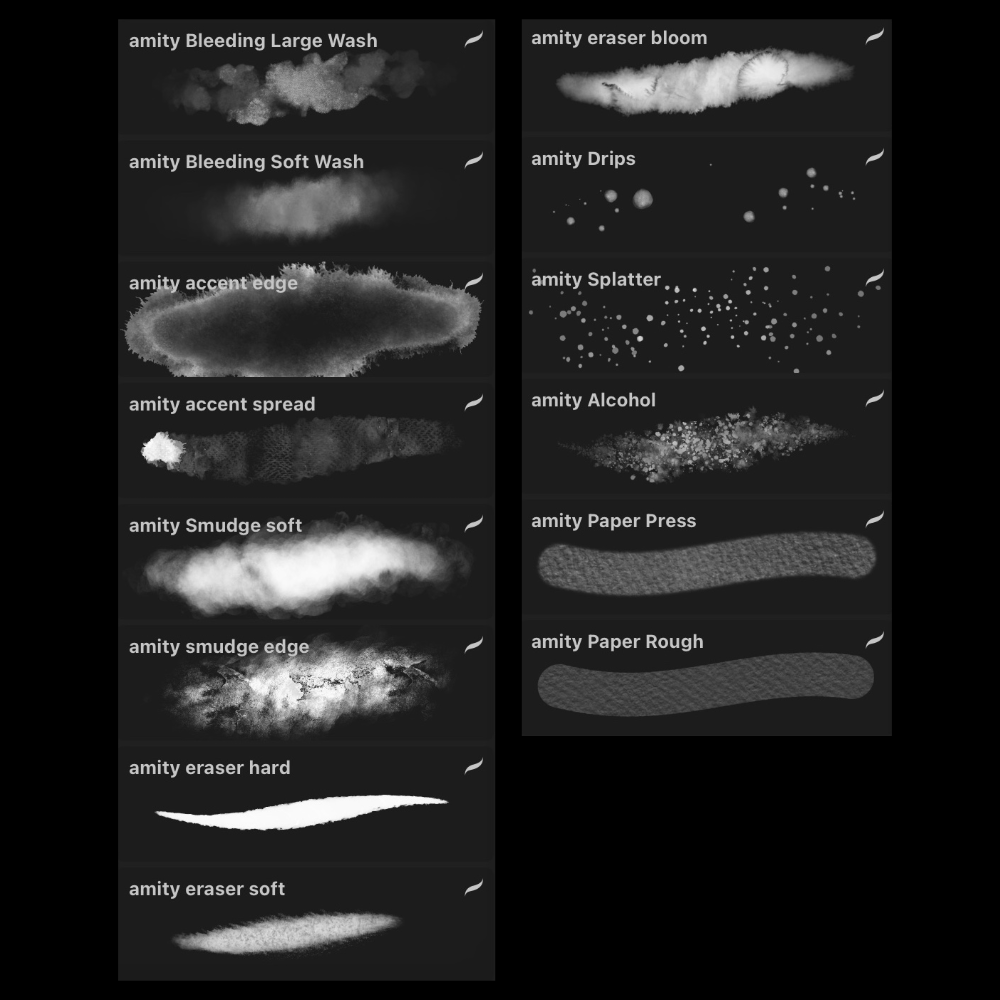 Enjoy a set of stunning watercolor brushes for Procreate produced by amity_sensei!